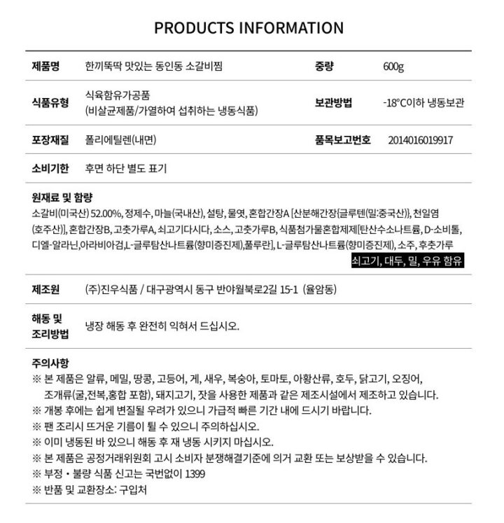 밥도둑🍚동인동식 “소”마늘찜갈비600g[12월10일/수요일수령]